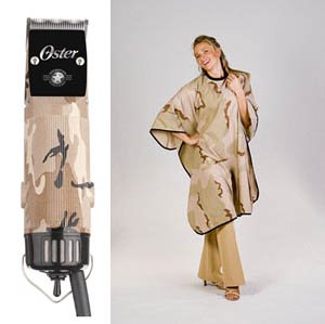 OSTER Desert Camo Limited Edition 76 Clipper * Operation Homefront with Desert Camo Cutting Cape Oster Limited Edition Desert Camouflage Case 76 Heavy Duty Detachable Blade Clipper with one Size 000 Blade * New improved cool running motor Operates quiet and cool * Heavy-Duty Detachable Blade System * Designed for continuous professional use * Universal motor is powerful, yet quiet * One detachable size 000 clipper blade included * Blade slope provides proper angle for tapering * Combined tension & guide plate to ensure positive movement of top blade * 8 foot cord * Limited Edition Clipper Case Color: Desert Camouflage * Treat Yourself to a Classic While Supplies Last! * Made in U.S.A. ** Clipper Case Color: Desert Camouflage **** UNI-SEX Hair Cutting Cloth * 100% Nylon / Soft, Silky, Durable and Water Resistant * Jumbo Size: 45" wide x 60" long * 5-Snap Neck Closure with Nylon Neck Band * Cape Color: Desert Camouflage